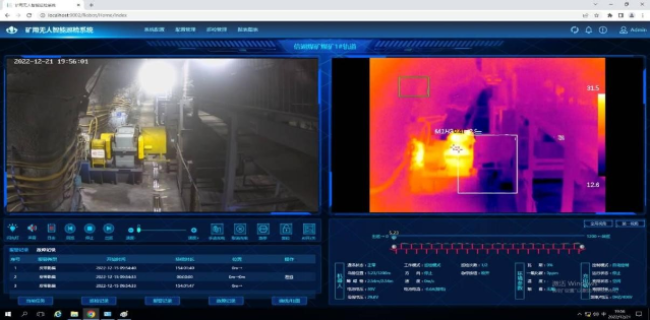 巡检机器人系统:实施了煤矿悬挂轨道式巡检机器人,可替代人工实现对巡检线路上的音、视频和环境参数的连续监测,以及对安全隐患的智能识别并执行联动控制。