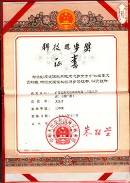 (2)1998年“矿井瓦斯突出预测预报(方法和仪表)”获国家科技进步三等奖;