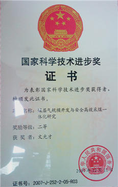 (1)2007年“煤层气规模开采与安全高效采煤一体化研究”获国家科技进步二等奖;