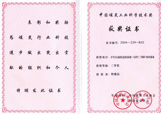 8 | 矿井多元地质信息集成系统 | 煤炭工业科学技术奖 | 二等奖 | 2004 | 3 |