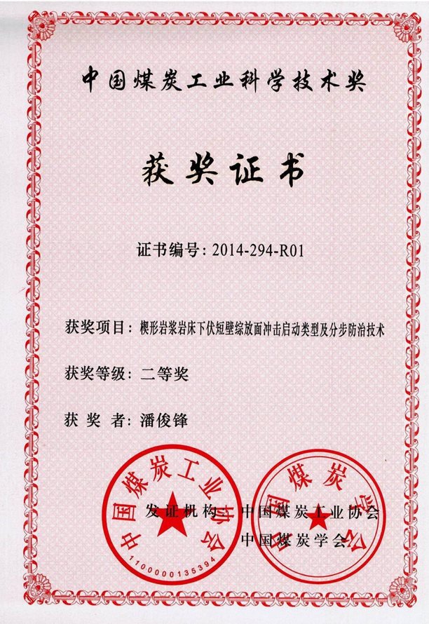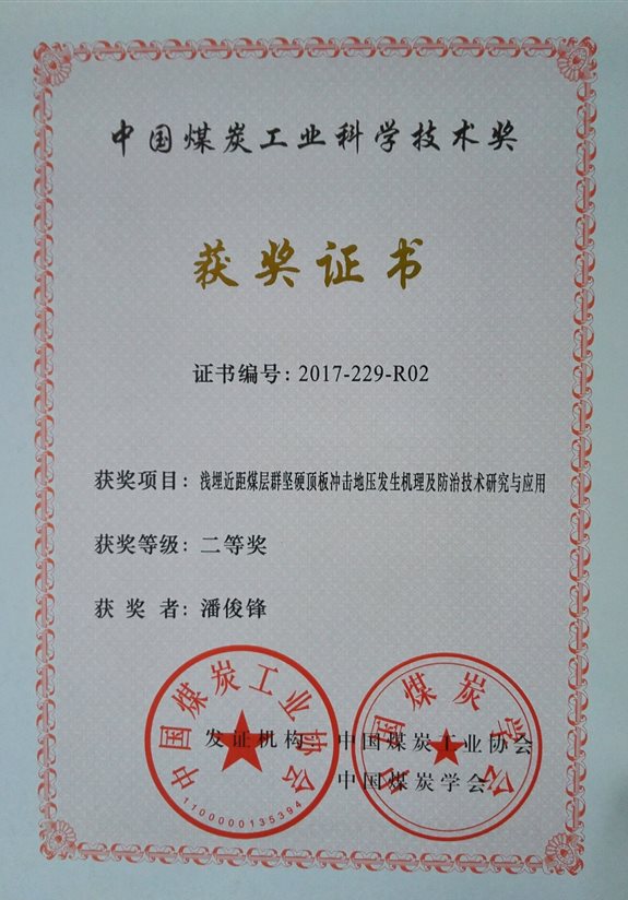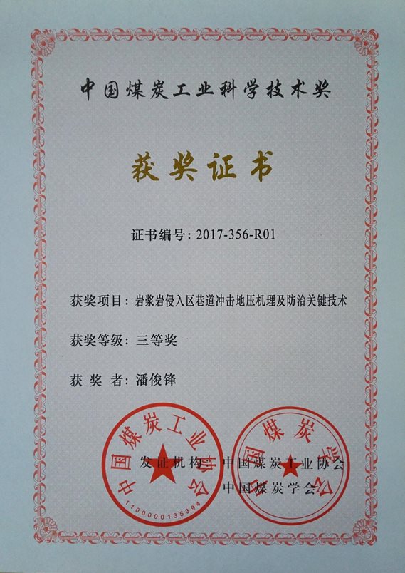 潘俊锋,男,陕西旬邑人,博士,研究员,硕士生导师,中煤科工开采研究院采矿所副所长。国家安全生产专家组专家,中国煤炭学会煤矿动力灾害防治专委会副主任,中国岩石力学与工程学会动力学专委会委员,中国煤炭学会岩石力学与支护专委会委员,国家科技专家库专家。曾获国家科技进步二等奖1项,其他省部级奖励18余项;获孙越崎青年科技奖、中国煤炭工业杰出青年科技工作者称号、中国岩石力学与工程学会青年科技奖、全国杰出工程师青年奖。申请发明专利15项,授权10项,授权实用新型专利8项,发表学术论文50余篇,其中SCI/EI收录35篇,第1作者27篇,出版专著1部,参编著作4部;主持或参与制定国家、行业标准、规定等12项。