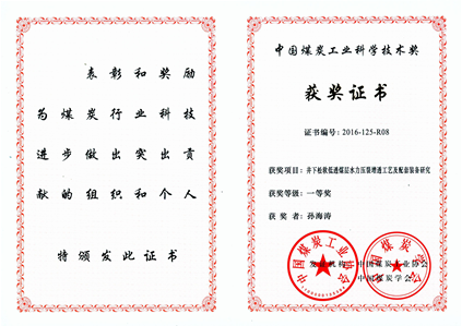 (5)第六届安全生产科技成果奖一等奖:单一开采煤层条件下采动区瓦斯地面井抽采成套技术