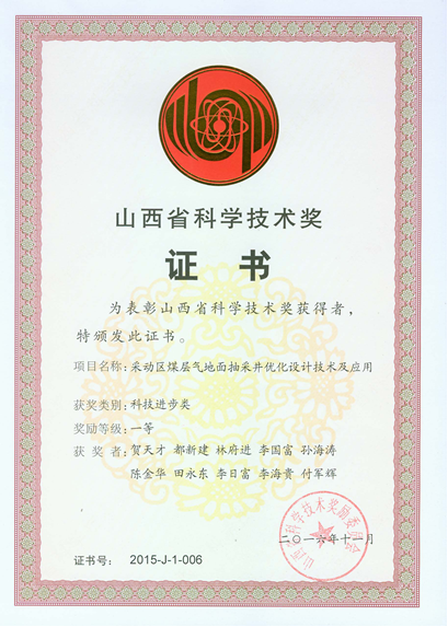 (3)山西省科学技术进步一等奖:采动区煤层气地面抽采井优化设计技术及应用