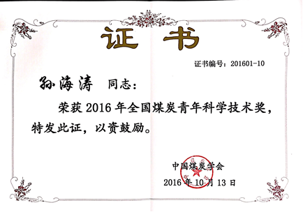 孙海涛,男,河北保定人,研究员、博士后、博士生导师,现任中煤科工集团重庆研究院有限公司科技发展部副主任,国家科技专家库专家。主持和参与国家及省部级重点科研项目20余项,参编行业标准、法规4项,获中国专利优秀奖1项、省部级一等奖5项、二等奖2项、集团公司科技一等奖1项,获国家发明专利17项,出版专著2部,发表论文60余篇、SCI/EI收录30余篇。先后获评中国职业安全健康协会青年科技奖、全国煤炭青年科技奖、中国产学研合作创新奖等,2018年入选重庆市高层次人才特殊支持计划(科技创新领军人才),2019年获重庆市杰出青年科学基金资助。