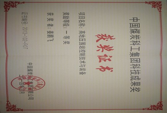 6、高应力巷道及坚硬顶板定向水力压裂控制技术与装备,2013年,中国煤炭工业协会,中国煤炭工业科学技术一等奖,排名第13;