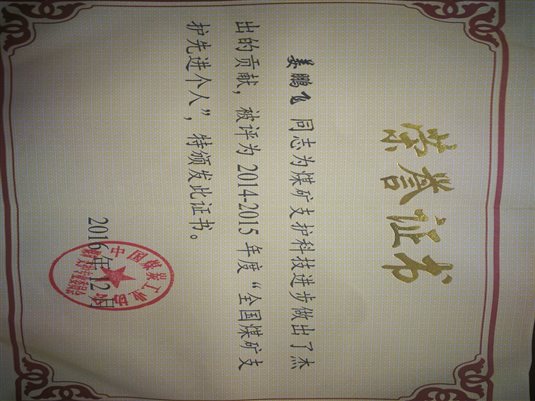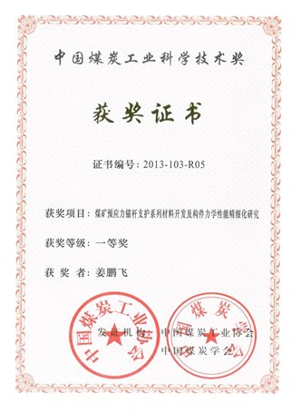 3、煤矿预应力锚杆支护系列材料开发及构件力学性能精细化研究,2013年,中国煤炭工业科学技术一等奖,排名第5;