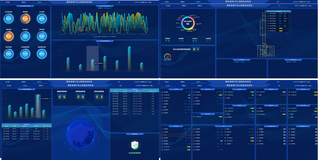 在曹家滩煤矿进入“智时代”的今天,防尘也不甘落后。依托曹家滩矿建设智能化矿井打下的坚实基础,重庆研究院同步建成了矿井智能综合防尘体系,实现对主要防尘设备运行工况的实时监测,让智能防尘系统在防尘岗位上“建功立业”,超出预定范围进行提示或者报警,提示人员及时维护,保证了设备和系统持续健康运行。