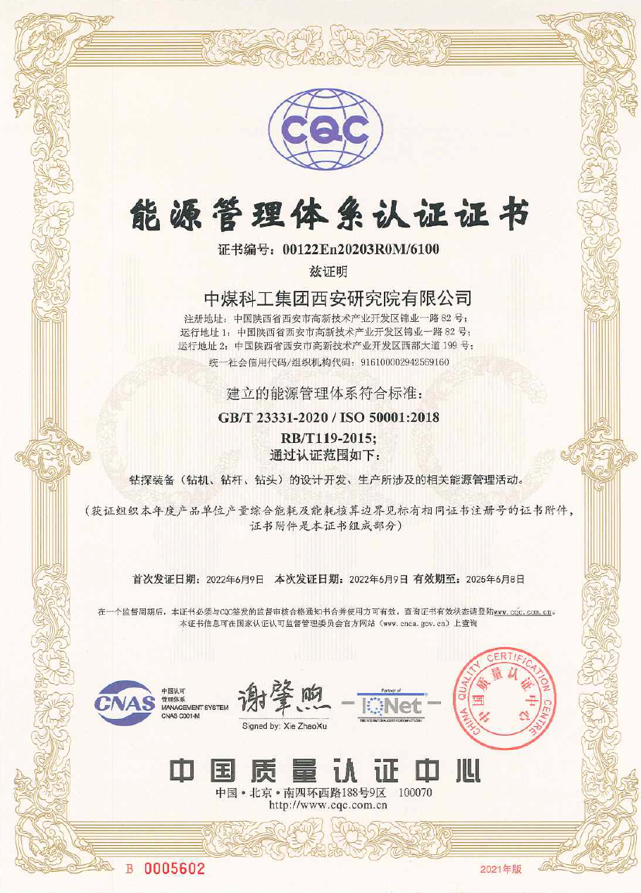 6月9日,西安研究院获中国质量认证中心(CQC)颁发的能源管理体系认证证书,标志着西安研究院已建立合理且具有可操作性的节能减排管理体系。