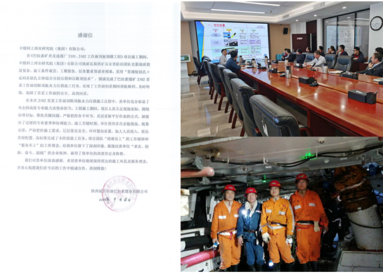 近日,陕西延长石油巴拉素煤业有限公司发来感谢信,祝贺西安研究院矿压灾害防治团队自主开发的“定向长钻孔+常规短钻孔”分段压裂综合立体超前区域治理技术在巴拉素煤矿成功应用。