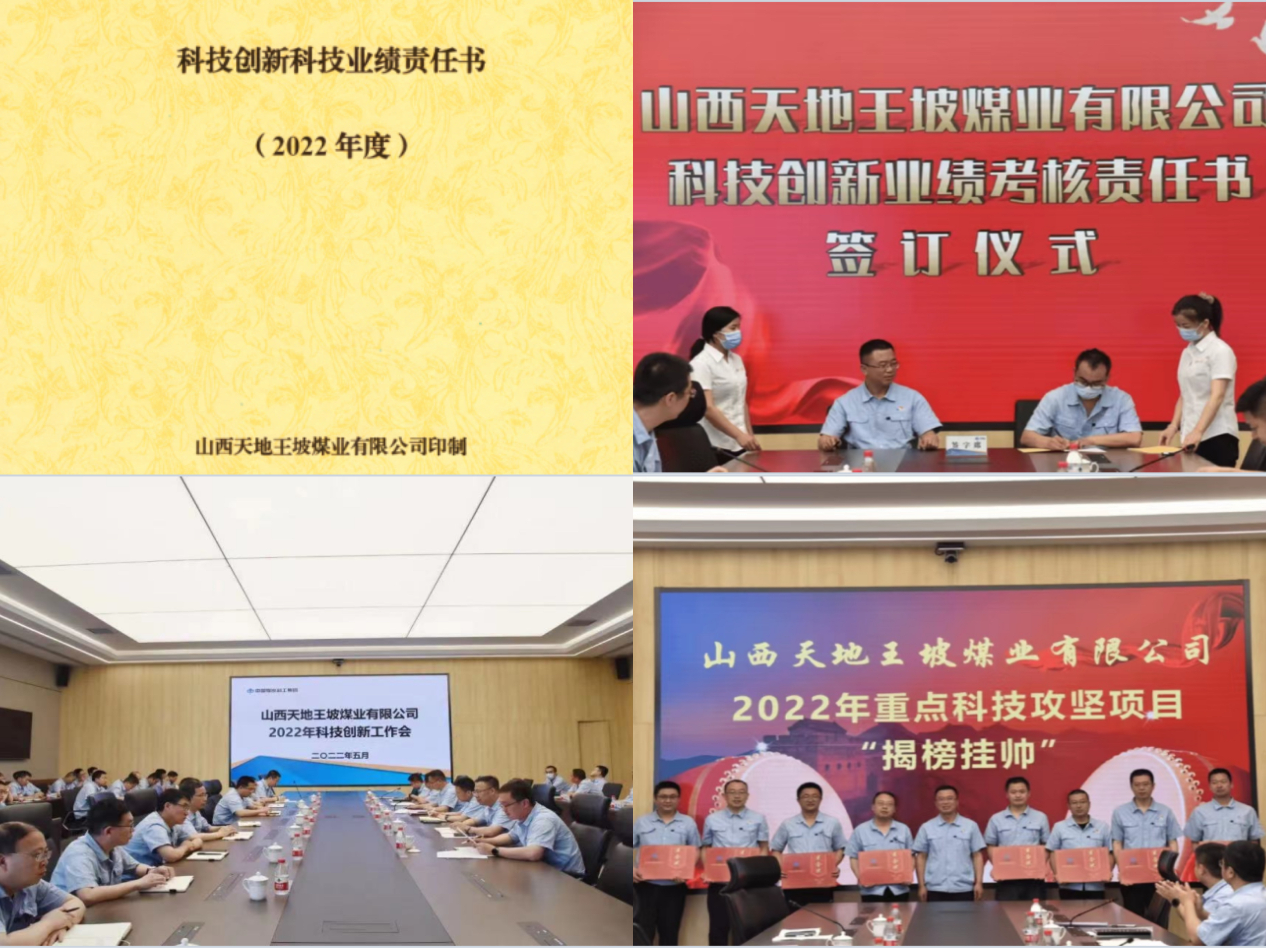 针对安全生产中的“卡脖子”的问题和技术难题,天地王坡加大技术攻关和课题研究,下好科技创新“先手棋”,走好科技创新的产学研合作模式,力争在瓦斯治理、采掘效率提升等关键技术领取实现跨越式提升,提升矿井科技含金量。制定了2022年科技创新项目46项,并组织专家组对各项目进行了评审论证,同时就2022年重点科技项目进行了“揭榜挂帅”,全年累计开展重点科技项目10项,面上科技项目12项,青年科技项目4项,五小创新项目20项。
