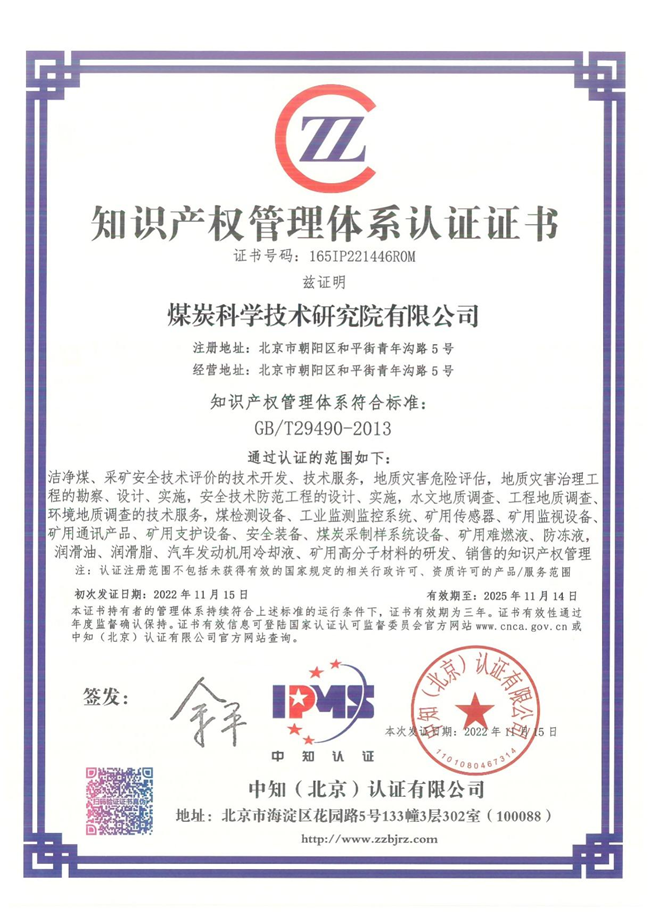煤科院通过知识产权管理体系认证