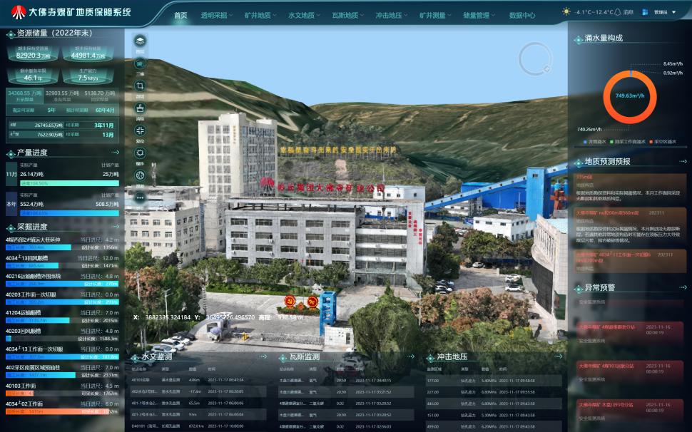 彬长矿区地质条件复杂、致灾因素耦合叠加,安全管理难度较大。针对这一难题,该系统运用多源数据融合、大数据、空间信息分析计算等多项前沿技术,形成了统一标准的矿井级地测数据资源中心,覆盖了矿井级全地测业务地质保障系统,并成功构建了矿井级采掘生产三维地质透明平台。